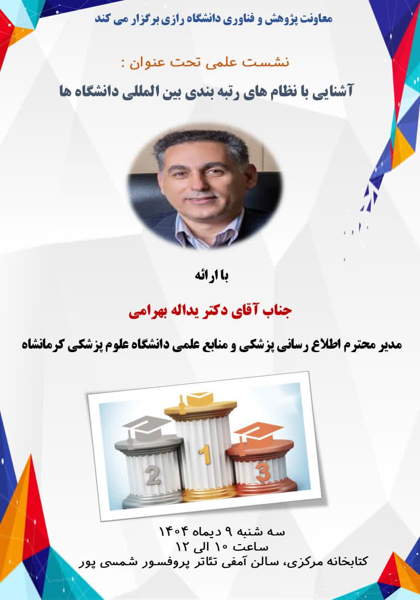 برگزاری کارگاه مشترک دانشگاه علوم پزشکی و رازی با عنوان آشنایی با نظام های رتبه بندی توسط دکتر یداله بهرامی