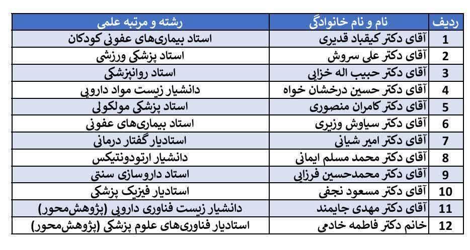 حضور اعضای هیأت علمی دانشکده داروسازی در فهرست دریافت‌کنندگان گرنت تشویقی اعضای هیأت علمی فعال سال ۱۴۰۴